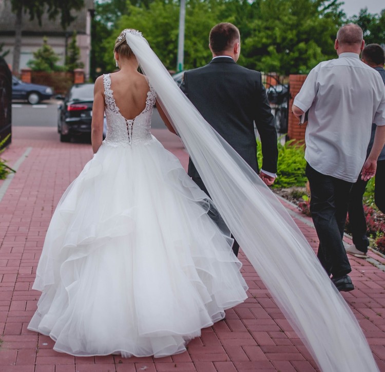 Do sukni dodam welon katedralny 5 metrowy oraz krótszy (ponad 1m) na salę, oraz halkę 3 kołową.