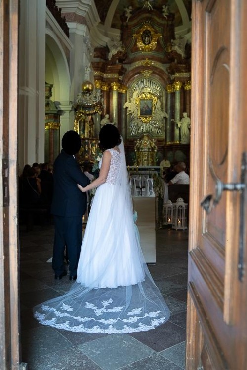 Jest możliwość również zakupu welonu o długości 3, zakończonego przepiękną koronką, wysokiej jakości.