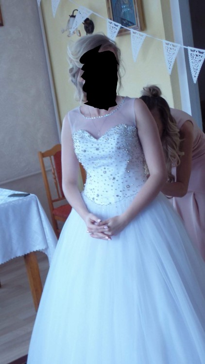Suknia jest na gorsecie więc dopasuje się do każdej figury. Po czyszczeniu.