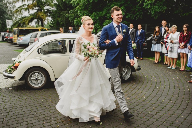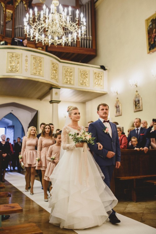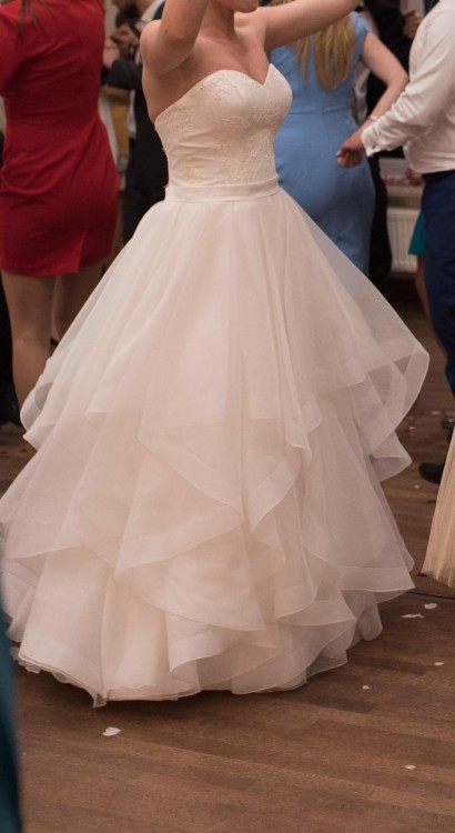 Suknia niesamowicie lekka, falbany są zwiewne, pięknie układają się w tańcu. Dla zainteresowanych podeślę link do teledysku ślubnego, na którym widać sukienkę w "ruchu" :)