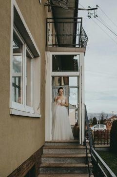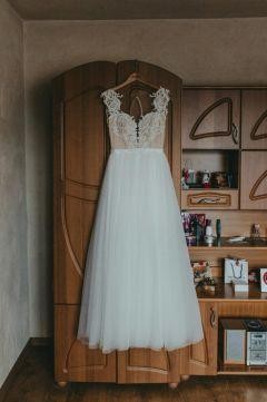 Oferuję na sprzedaż prześliczną suknię ślubną, firmy Gabbiano Strekkoza - Bellamy w kolorze light cappucino, rozmiar 36 (pomniejszane) na wzrost 164 cm + 7cm obcas.