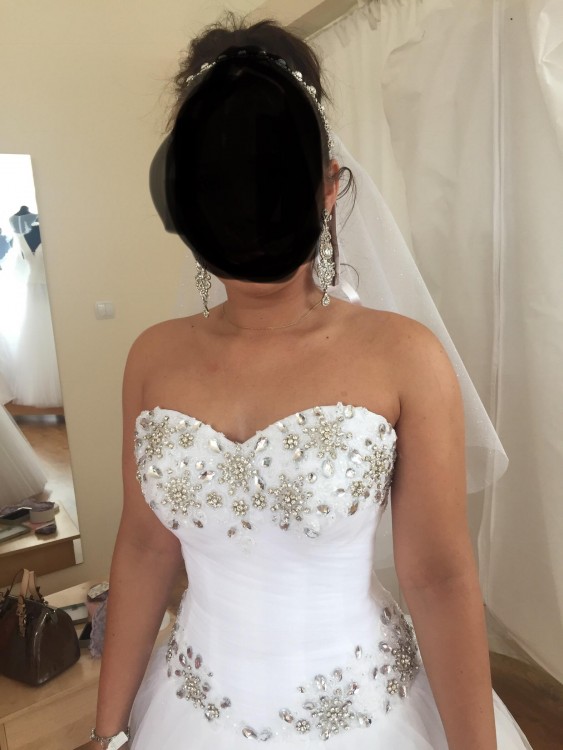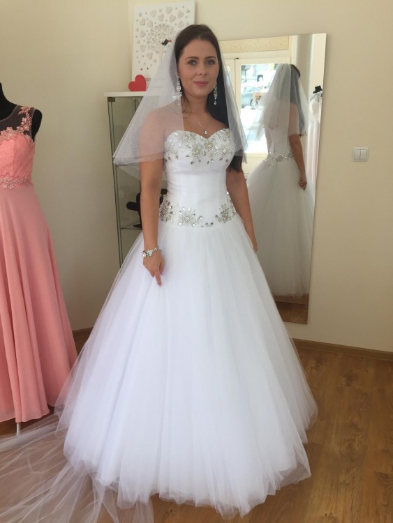 Sprzedam piękna suknie ślubna firmy IGAR. Do sukienki dołączony jest długi tren, suknia wykładana pięknie mieniącymi się kamieniam, suknia tylu princesska, do sukni dolaczam welon który uszyty jest z brokatowymi materiału idealnie komponuje się z suknią