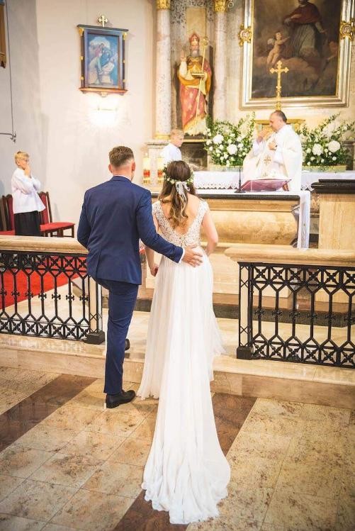 Suknia ślubna marki Fulara&Żywczyk, kolor ecru, materiał muślin, rozmiar 34/36. Suknia posiada odpinany tren, który pięknie prezentuje się w kościele. Długość sukni 160 cm+ 9 cm obcas, obwód biustu 84 cm, pasa 65, bioder 96 cm. Możliwość przymiarki sukni w miejscowości Lędziny. Numer telefonu 881098364.