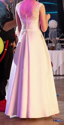 Uszyta na 168 cm + 5 cm obcasów. Rozmiar 34 - 38. Gorset sprawia, że suknię można łatwo dopasować do sylwetki i dodatkowo ją podkreśla.