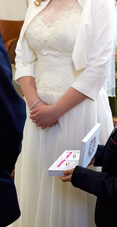 Bogato zdobiony gorset, który idealnie układa się na miseczce D :-) dzięki czemu nie powiększa a ładnie podkreśla kobiece atuty.