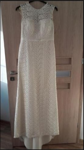 sprzedam piękna suknię ślubną Gala Lydie. Kolor ivory/ śmietana. Suknia jest z grubej koronki, zapinana na guziki z tył. Tren krótki, podpinany na guzik. Dodatkowo wiązana jest na gorset ( w środku sukienki) co pięknie modeluje sylwetkę).