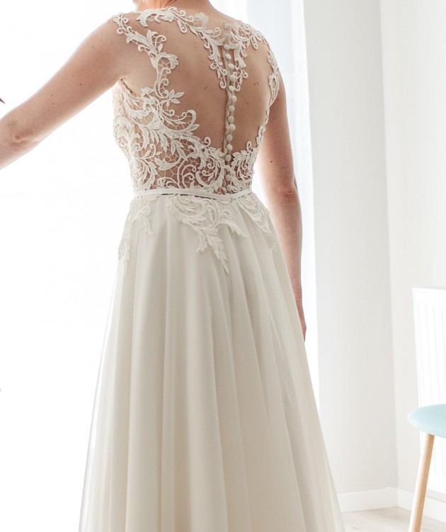 Na sprzedaż suknia ślubna model Gala Machiko z koronką na plecach w kolorze Ivory.