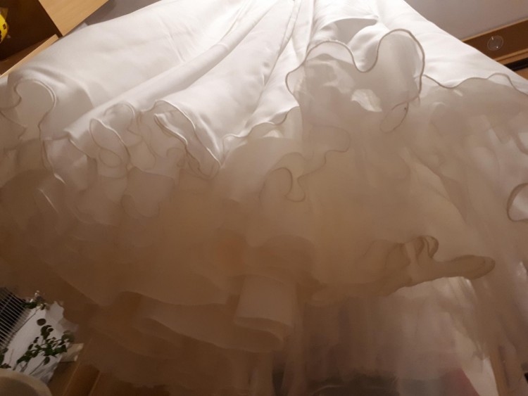 • Suknia jest wyprana w pralni, która specjalizuje się w sukniach ślubnych i nie posiada żadnych uszkodzeń oraz dziur (dołączam zbliżone ujęcie dołu sukni).