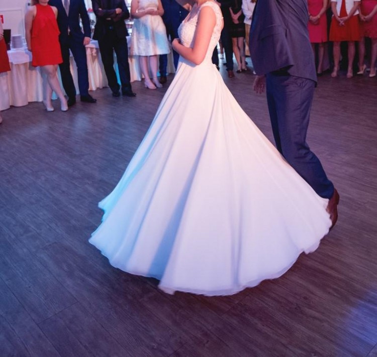Suknia była po weselu prana i przechowywana w oryginalnym pokrowcu.