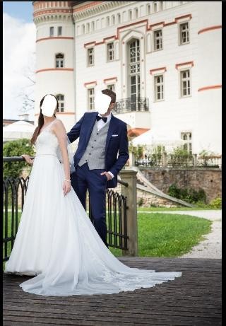 Mam do sprzedania piękną suknię ślubną firmy GELLENA, model Taina szyta na rozmiar 38/40, wzrost 175cm + 7cm obcas. Suknia ma regulowaną szerokość koła, więc umożliwia to lekką regulację długości (+/- 2cm)
