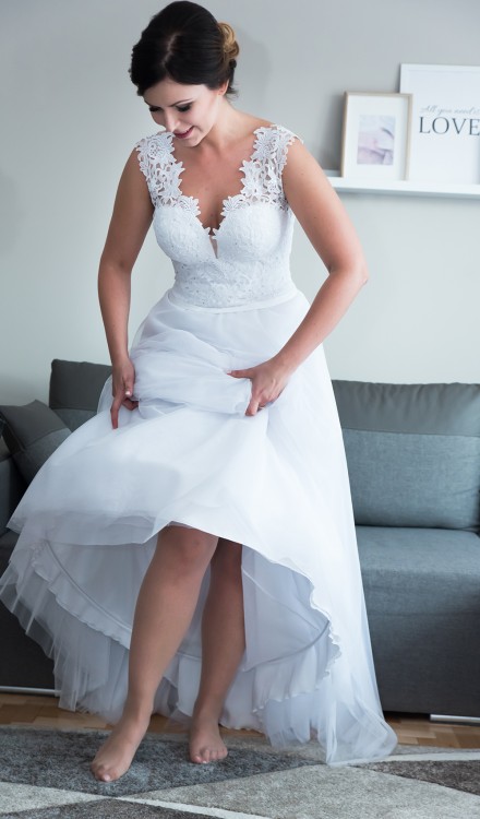 Piękna, lekka i wygodna suknia ślubna w kolorze białym.