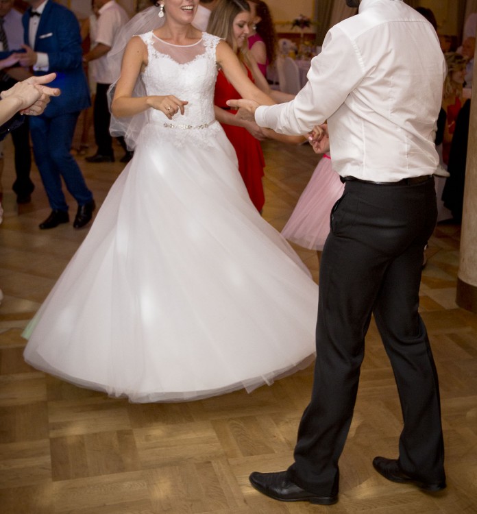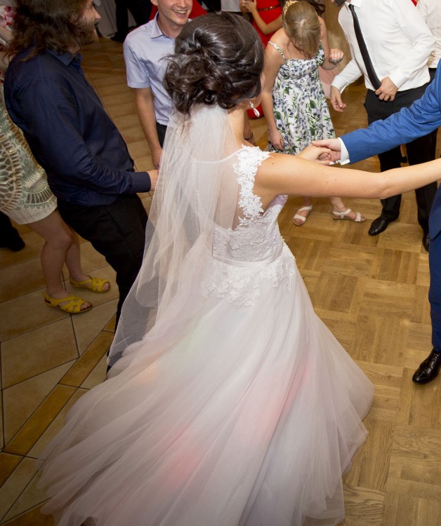Zachęcam do zakupu, robi wrażenie. Jest wygodna, pięknie układa się w tańcu. Do sukni mogę dołączyć długi biały welon do ziemi (3m) oraz krótszy, świetnie sprawdzający się na weselu.