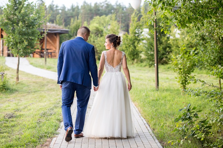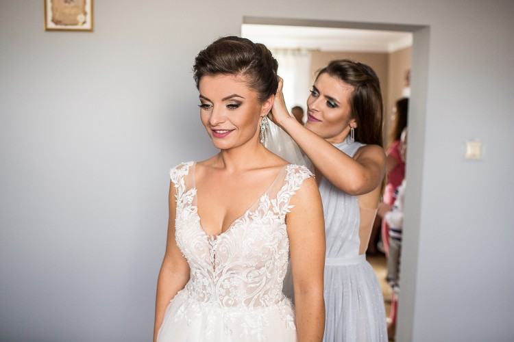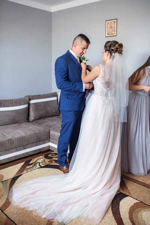 Sprzedam sukienkę Marki HERM'S zakupioną w salonie Promariage. Ma kolor śmietankowo - szampański. Rozmiar 34/36. Uszyta na wzrost 160 cm + 9 cm szpilki. Jeśli nosisz typowe 34/36, to na pewno będzie pasować. Zawsze można skócić ją z długości czy zrobić inne poprawki krawieckie - żaden problem. W biuście ma wszyte dwie cieliste miseczki. Góra posiada cielistą siateczkę, wygląda jak skóra, nie widać jej wcale. Siateczka obszyta koronkowymi aplikacjami. Aplikacje z kolei są wyszyte ozdobnymi kamyczkami.Z tyłu jest zapinana na zamek i ozdobne guziczki. Posiada odpinany tren który mieni się w delikatny pudrowy róż. Sukienka jest przepiękna, taka nietuzinkowa - zrobiła duże wrażenie na gościach. Suknia leciutka jak puch jest bez KOŁA i pięknie układa się w tańcu!. Zapraszam do kontaktu, chętnie odpowiem na wszystkie pytania!. Do przymierzenia w Korczynie, woj. Świętokrzyskim (tylko zainteresowane KUPNEM osoby noszące rozmiar 34/36). W cenie oddam piękny welon wyszyty kamykami i biżuterię z kamieni Swarowskiego (branzoletka i długie kolczyki).