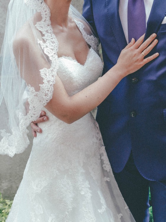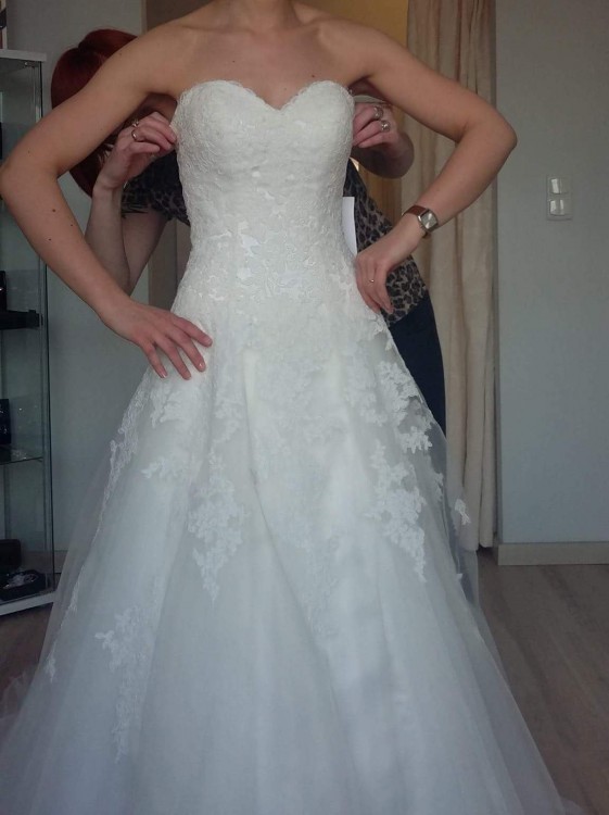 Suknia była założona tylko na ślub i wesele, Nie była zakładana na sesję zdjęciową. Została wyprana w profesjonalnej pralni chemicznej. Suknia i welon kupione w salonie sukien ślubnych Novia w Szczecinie.