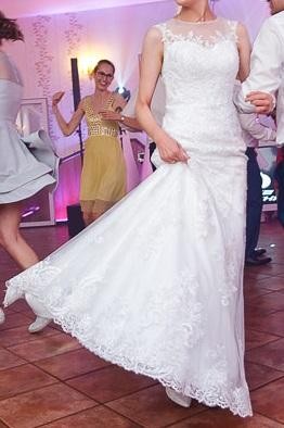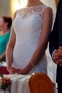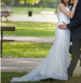 Sprzedam suknię ślubną Herm's typu syrenka. Pasuje na wzrost 169 cm plus 8 cm obcas. Suknia została wyprana chemicznie.