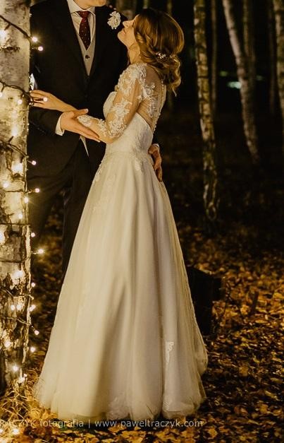 Do sukni dołączam długi welon (3 m), koronkową koszulkę pod suknię oraz tiulową halkę bez koła, która nadaje objętości i lekkości.