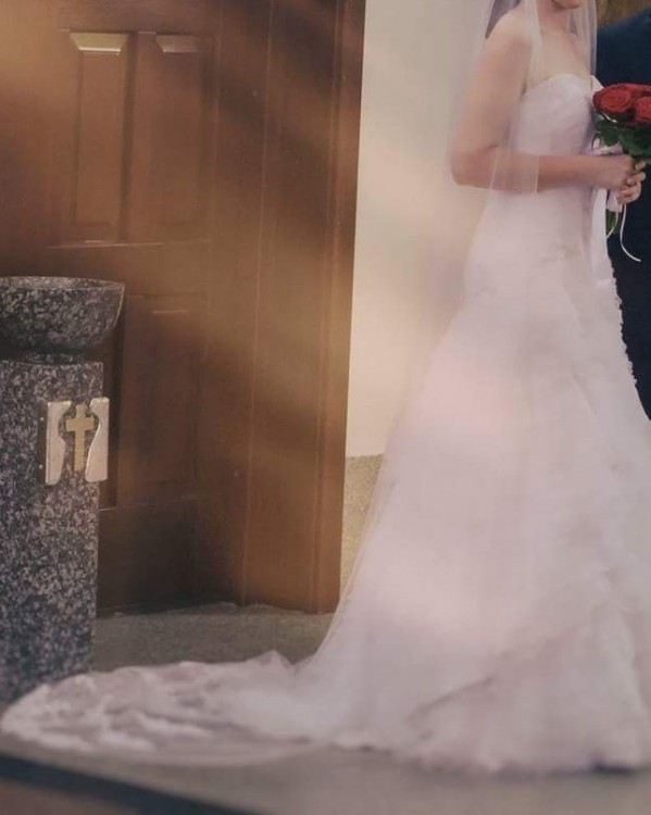 Mam do sprzedania sukienkę ślubną (rozmiar 38/40) kupioną w salonie w Szczecinie. Suknia jest w bardzo dobrym stanie, można ją ubrać w wersji długiej, np. do kościoła, a później pozostać w wersji krótkiej po ściągnięciu jednej z warstw. Do sukni dorzucam 3 metrowy welon gratis :)