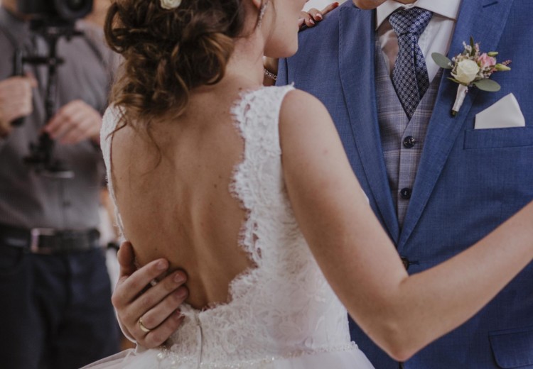 Suknia przepięknie odkrywa plecy, jest zapinana z tyłu na zamek, przez co jej założenie i zapięcie trwa chwile. Posiada wszyte miseczki.