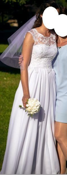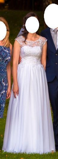 Sprzedam suknię ślubną inspirowaną modelem NABLA Kristal. Jedyna w swoim rodzaju, szyta na zamówienie. Kolor biały. Założona tylko na ślub i krótką imprezę weselną. Po czyszczeniu w pralni.