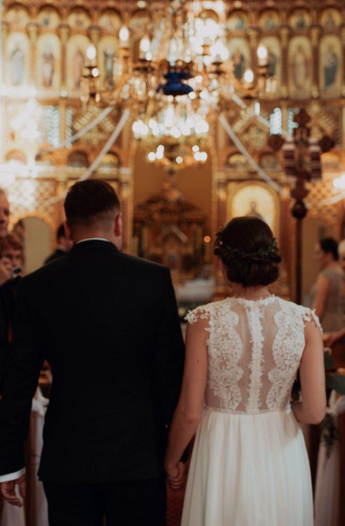 Suknia jest lekka i delikatna, szyta na miarę z ręcznie naszywanymi koronkami.