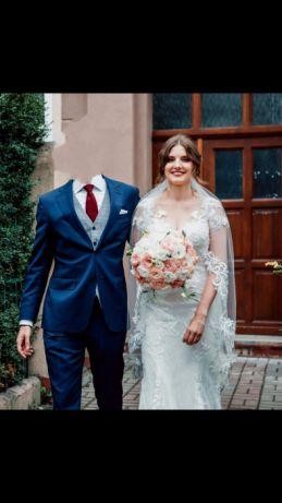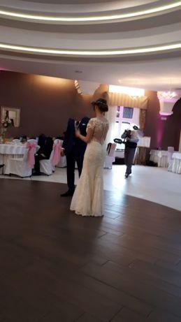 Piękna suknia ślubna w stylu retro, o kroju syrena/ryba, dla dziewczyny wzrost min. 172 cm.