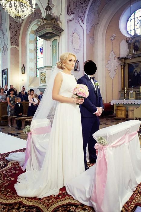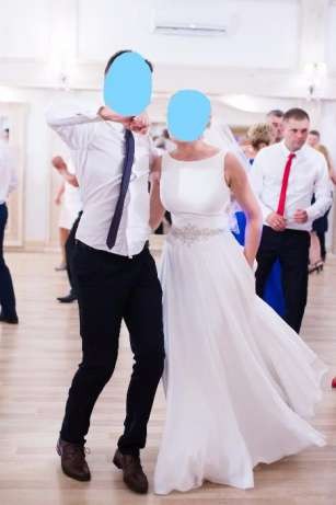 Suknia jest bardzo komfortowa w tańcu, ma wszyte miseczki, więc można nie zakładać biustonosza – oczywiście wedle uznania. Do sukni dołączam długi klasyczny welon, który był wykorzystany tylko w kościele.