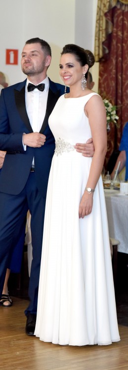 Suknia jest bardzo kobieca i jednocześnie wygodna, lekka, wspaniale układa się w tańcu.
