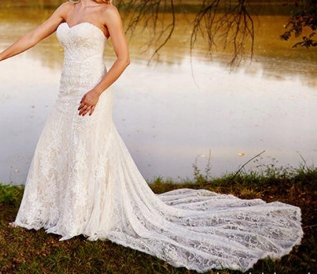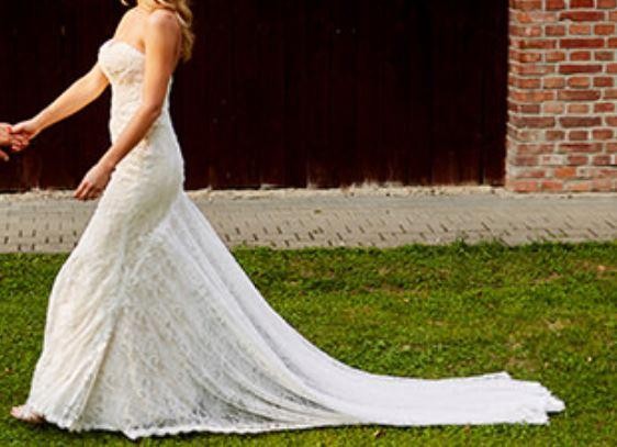 Model sukienki to: 8967, krój: rybka/trąbka. Suknia posiada piękny, okazały tren z koronki, który można podpiąć.