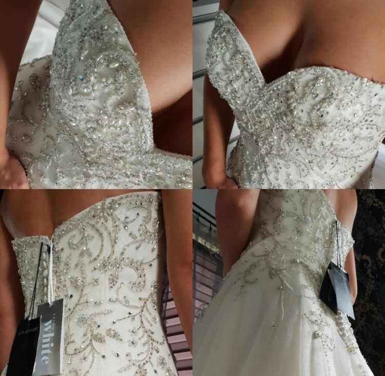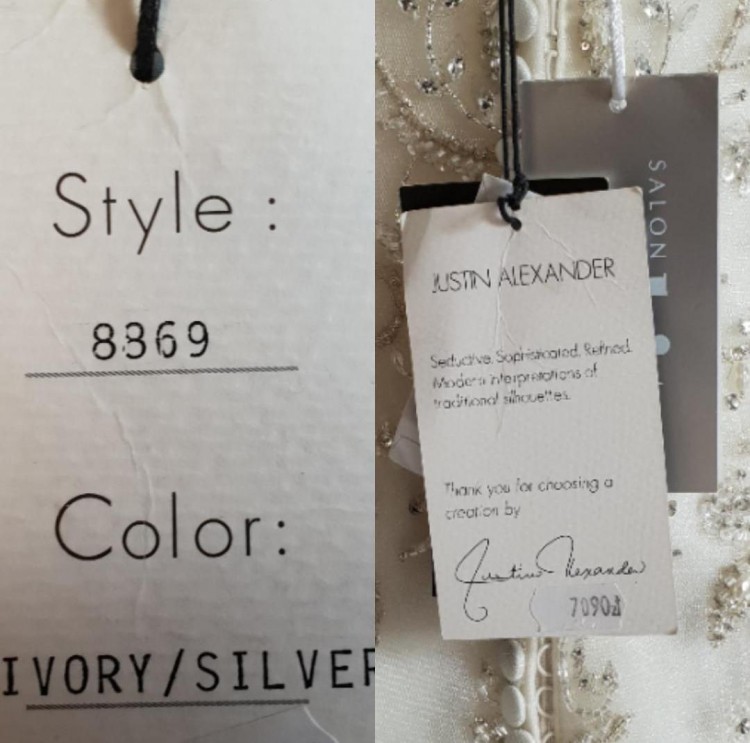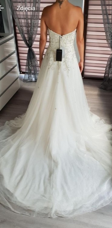 Przedmiotem ogłoszenia jest całkiem NOWA, nigdy nie założona do ślubu suknia marki Justin Alexander (metki widoczne na zdjęciach).