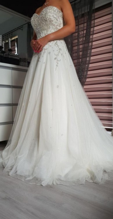 Suknia nigdy nie była zwężana ani skracana, więc spokojnie można ją dopasować do siebie.