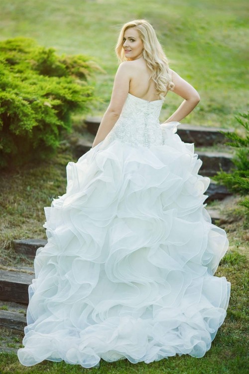 Posiadam na sprzedaż suknię ślubną Justin Alexander Signature 9821 widoczną na zdjęciach. Suknia jest jednoczęściowa, zapinana na zamek i dodatkowo na guziki, z długim trenem, który można bez problemu i efektownie podpiąć. Rozmiar to 38 z możliwością regulacji u krawcowej, odpowiednia dla osoby o wzroście 170 cm ( + 4 cm obcas) jednak suknię można także ładnie wyregulować na wyższą osobę. Kolor Ivory. Suknia pomimo ilości falban jest bardzo wygodna, po weselu nie miałam żadnych obtarć na ciele od kamieni wszytych w gorset, kompletnie nie zsuwała się co zawdzięczam wszytym gumom podtrzymującym pod gorsetem. Idealnie współgrała ze mną podczas tańca co widać i na zdjęciach i na filmie. Suknia wróciła z wesela i z sesji plenerowej w idealnym stanie, krawcowa dopasowała suknię w taki sposób, że nie musiałam się o nic martwić, Jest wyprana i przygotowana na kolejny piękny dzień, szczęśliwej posiadaczki :) W komplecie dorzucam koło, które w salonie jest płatne dodatkowo ok 200 zł