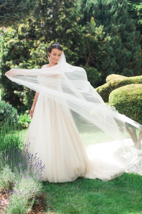 Suknia jest wyjątkowa - dół składa się z kilku wartw tiulu od białego po beżowy, przez co suknia mieni się wieloma kolorami i została nazwana suknią "ombre"