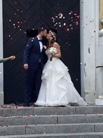 Sprzedam suknie ślubna Justin Alexander model Sweetheart 1123, kolekcja 2018/2019. Jestem pierwsza właścicielką. Rozmiar 36/38 na 165 cm wzrostu plus 10 cm obcas. Biust 92 cm z wszytym biustonoszem, można wypruć i dopasować do własnych potrzeb. Kolor pink sand. Suknia ma dodatkowo naszytą koronkę w przedłużeniu gorsetu. Cena katalogowa 4300 zł. Zakupiona w salonie w Poznaniu. Więcej zdjęć i info priv. Nie potrzeba do niej kola, pięknie się układa w tańcu, nie przeszkadza w chodzeniu. Polecam suknia jest piękna i wyjątkowa, zrobiła ważenie na każdym :)
