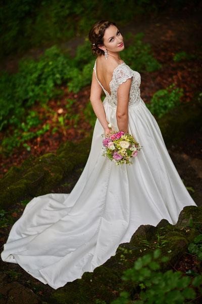 Suknia była szyta na wzrost 167 plus 9 cm obcas, wymiary 87/72/98. Suknia w kolorze Ivory, góra wykonana jest z prześlicznej gipury, a dół z satyny. Suknia posiada kieszenie, dodatkowo wszyte usztywniające miseczki. Tren jest podpinany na guzik. Stan sukni bardzo dobry, po praniu chemicznym. Zapraszam do obejrzenia, przymiarki Boguszów - Gorce (Wałbrzych), po wcześniejszym uzgodnieniu jest możliwość przymiarki w Kudowie - Zdroju. Możliwość negocjacji:) Gorąco polecam:)