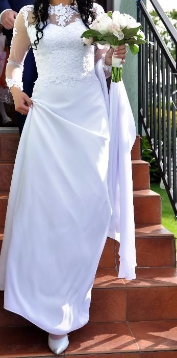Mam do sprzedania piękną suknie ślubną Projektu salonu Emmi Mariage : typ Vegas, suknia szyta na miarę na osobę wzrostu 164 + 6cm obcas. Gorset Sukni dodatkowo został ozdobiony kryształkami swarovskiego , również tren jest odpinany co jest w ogóle nie widoczne gdyż w miejscu przypięcia została naszyta koronka. Suknia świetnie podkreśla talię i biodra, jest po praniu chemicznym więc wygląda jak z salonu zero uszkodzeń. Zapraszam serdecznie do zadawania pytań. Cena do niewielkiej negocjacji :) Suknie można obejrzeć w okolicach Warszawy. Polecam
