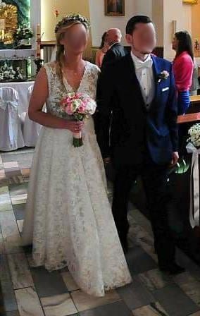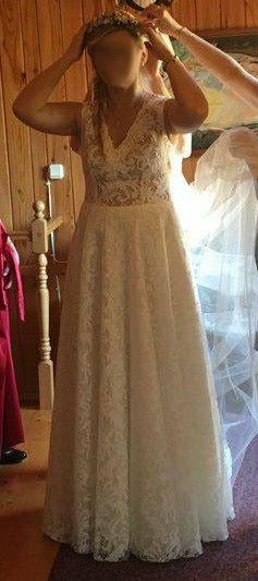 Sprzedam koronkową sukienkę ślubną w stylu boho uszytą w salonie Elizabeth Passion w marcu 2018r. za 3780zł. Rozmiar 40, na 176cm.