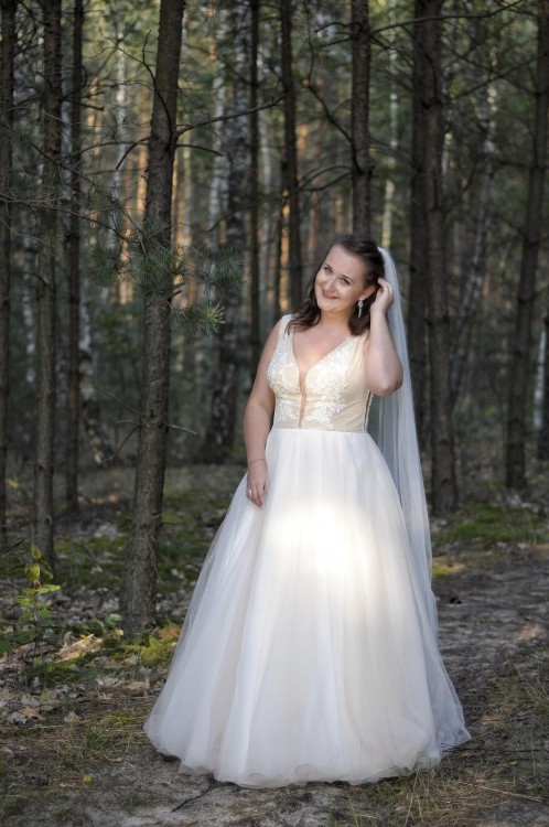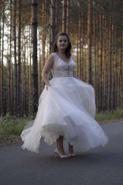 Suknia jest bardzo wygodna i pięknie wygląda w ruchu. Nie krępuje ruchów, nic nie "gryzie". Jestem pierwszą właścicielką i posiadam dowód zakupu.