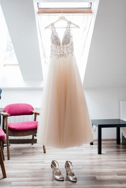 Suknia jest w stanie idealnym, bez żadnych uszkodzeń.