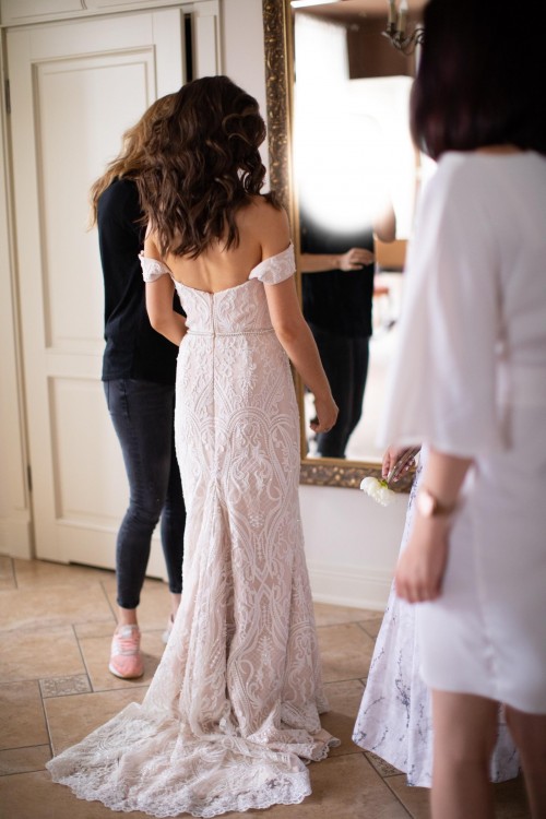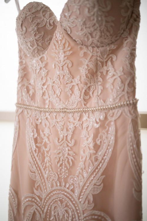 Suknia jest zmodyfikowaną wersją modelu Lori z warszawskiego salonu Laurelle, kolekcja 2018. Posiada unikalny kolor blush - jasny pudrowy róż o neutralnych podtonach (nie jest ani chłodno różowy ani ciepły beżowy)- który przepięknie podkreśla kolor skóry.