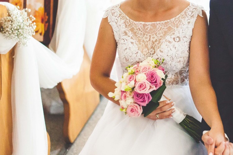 Suknia ma kształt litery A, lekko "księżniczkowa".