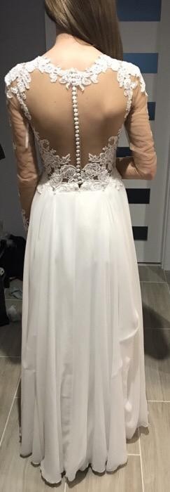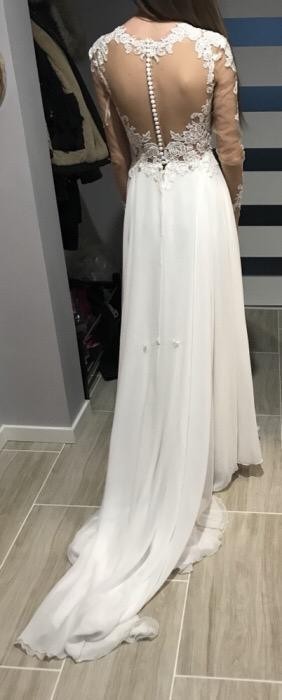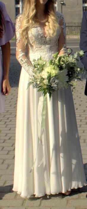 Na sprzedaż posiadam suknię ślubną Lilian West 6422 w kolorze IVORY. Szyta na wymiary: biust - 80 cm, talia - 69 cm, wzrost - 170 cm + 7 cm obcas. Zakupiona w salonie ANNA w Katowicach za 4500zł. Suknia jest wyczyszczona, do niewielkiej przeróbki krawieckiej - obszycie dolnej krawędzi sukni (chociaż jest to niewidoczne) oraz zszycie maleńkiej dziurki pod pachą na siateczce (ok 0,5 cm dziurka). Cena do niewielkiej negocjacji, więcej zdjęć mogę wysłać zainteresowanym na priv. Możliwość przymiarki sukni po wcześniejszym umówieniu się.
