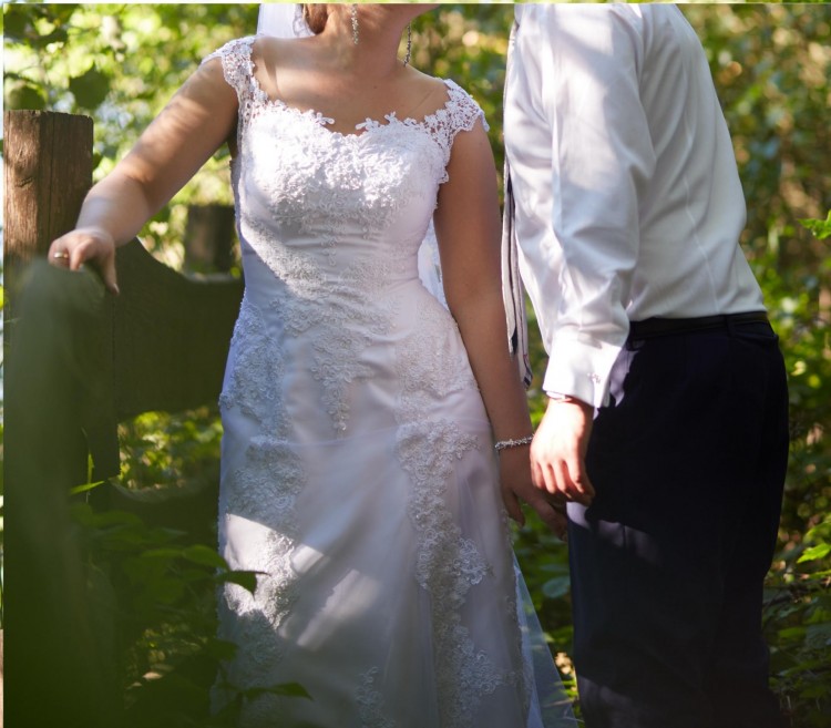 Suknia ślubna Liliane zakupiona w salonie Igar. W całości haftowana, z trenem.