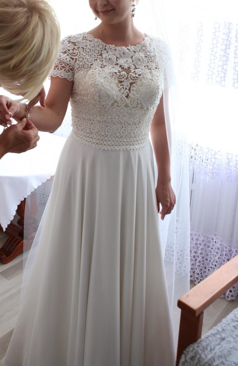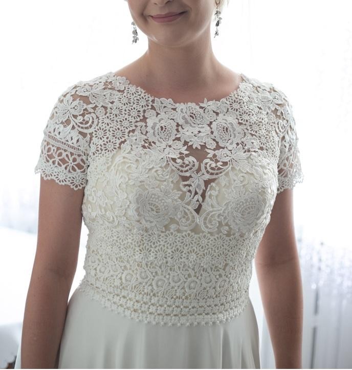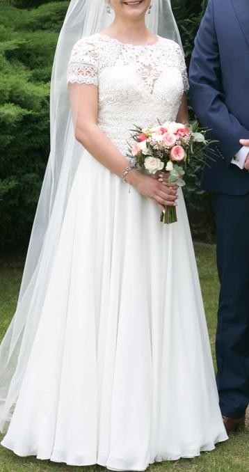Suknia zakupiona w Salonie w Zielonej Górze w czerwcu 2018 r. cena 4500 zł (do wglądu umowa podczas przymierzania sukni).