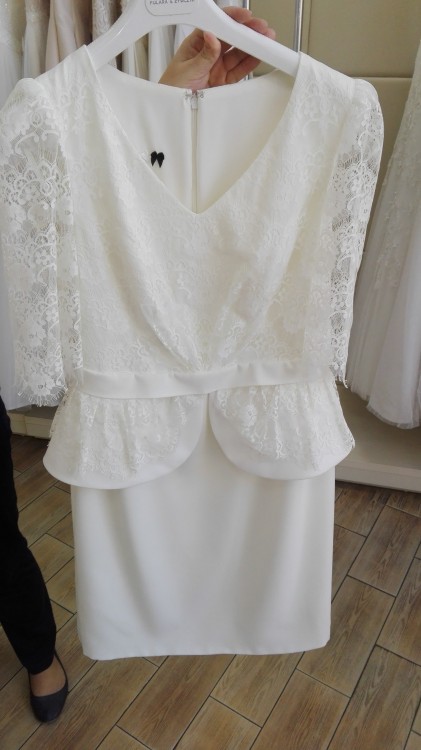 Rozmiar sukni 38/40 .Sukienka bardzo ładnie podkreśla figurkę, ta koronkowa baskinka jest taka bardzo kobieca, ładnie prezentuje się z tyłu. Sukienka jest bardzo profesjonalnie podszyta w biuście. Moja mama miała biustonosz pod nią, ale suknia jest szyta jak typowa suknia ślubna, tzn że jest tak dobrze odszyta w biuście ze świetnie podtrzymuje biust i bez biustonosza :) nie była tez nic poprawiania, rozmiar jest oryginalny,więc w celu już takiego 100% dopasowania można udać się do krawcowej która z pewnością bez najmniejszego problemu zaszyje z jednego i drugiego boku po centymetrze czy coś :)