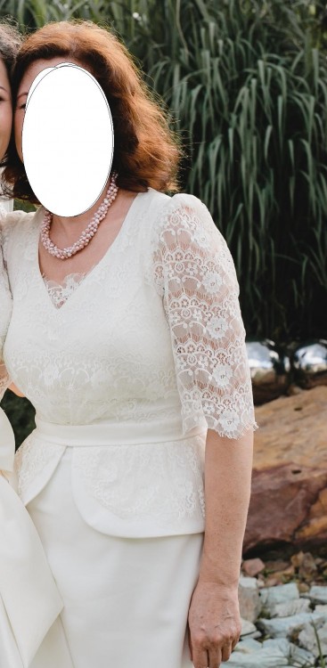 SUKNIA NADAJE SIĘ ZARÓWNO DLA PANI MŁODEJ DO ŚLUBU CYWILNEGO JAK RÓWNIEŻ DLA MAMY JAKO KLASYCZNA, ELEGANCKA KREACJA NA WESELE. SUKNIA MA PODSZYTĄ KORONKĘ NA DEKOLCIE, PONIEWAŻ DEKOLT JAK DLA MAMY BYŁ ZBYT GŁĘBOKI. MOŻNA JĄ BEZ PROBLEMU ODPRUĆ, CHOĆ MYŚLĘ, ŻE W TAKIEJ WERSJI PREZENTUJE SIĘ LEPIEJ.