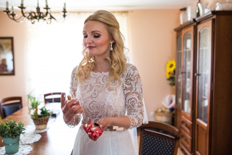 Do zestawu dołączam złoty pasek + długi, bajeczny tren projektu Violi Piekut, który się mocuje bardzo łatwo do paska (dodatkowy koszt 400 zł) oraz piękny welon wykończony drobnymi perełkami - rozwiązuje problem gołych pleców w kościele (dodatkowy koszt 200 zł).