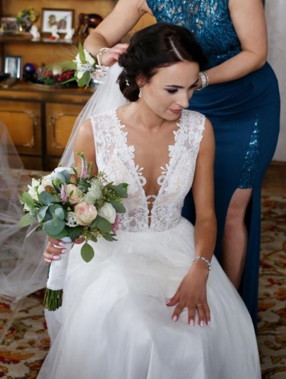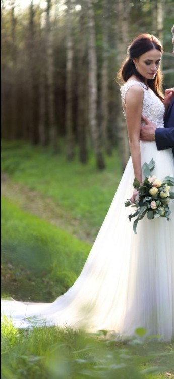 Piękna suknia ślubna kupiona w salonie model Anita. Suknia szyta miarę rozmiar 36-38 na wzrost 172cm plus szpilka 8,5 cm (oczywiście istnieje możliwość przerobienia sukienki) Pięknie się prezentuje, lekka i wygodna. Suknia posiada tren, który z łatwością mozna podpiąć. Dorzucę długo welon. Więcej informacji na priv.