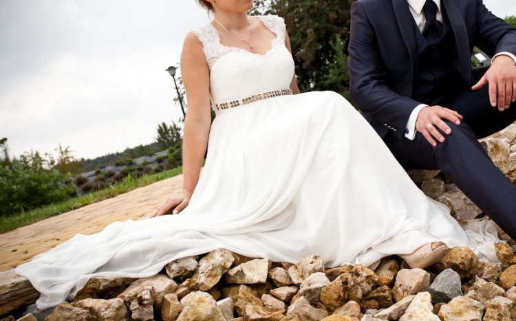 Zwiewna, elegancka suknia ślubna w stylu rzymskim z kryształkami Swarovskiego.