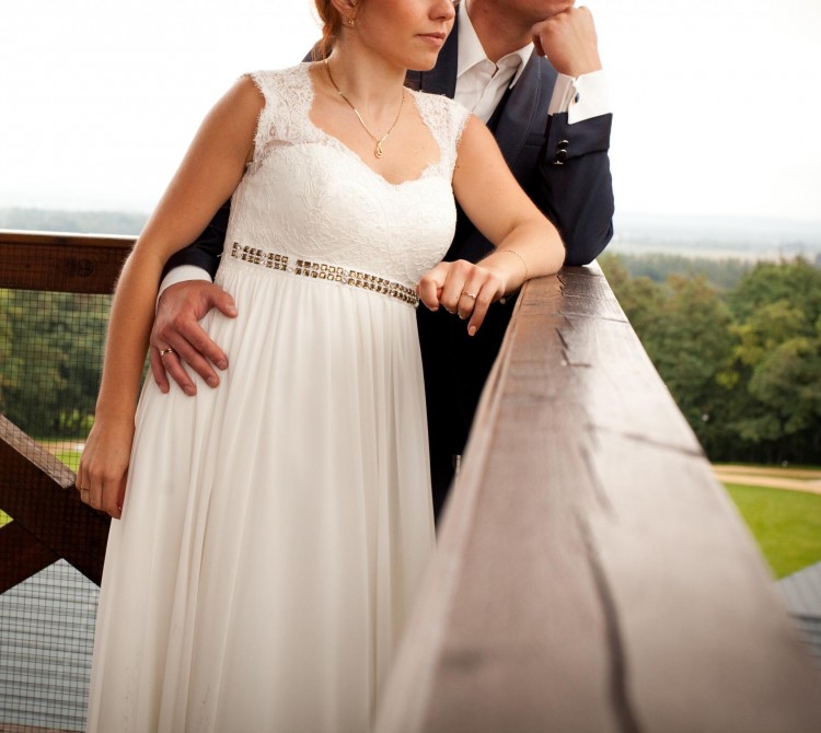 Sprzedam piękną, zwiewną suknię ślubną w stylu rzymskim z eleganckim pasem ozdobnym z kryształkami Swarovskiego i pięknym koronkowym wykończeniem. Koronkowe są ramiączka oraz całe plecy zapinane na niewidoczne guziczki. Rozmiar 36/38, wzrost pani młodej 160cm. Suknia bardzo lekka, wygodna, miękka. Również dla Panny Młodej w ciąży. Kolor śmietankowa biel (cieplejszy w odcieniu od śnieżnej bieli, ale znacznie jaśniejszy od ecru). Zakupiona w 2014r. w renomowanym salonie Sukni Ślubnych Madonna exclusive w Katowicach. Od tamtej pory cena sukni w salonie co roku wzrastała. Szczegóły pod nr telefonu. Suknia jest do obejrzenia/ przymierzenia w Mikołowie.