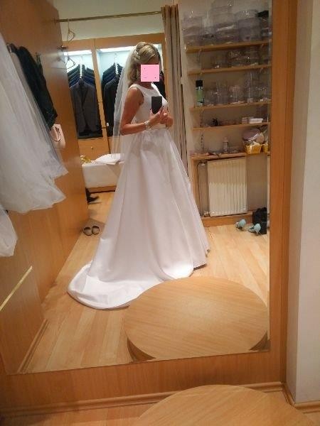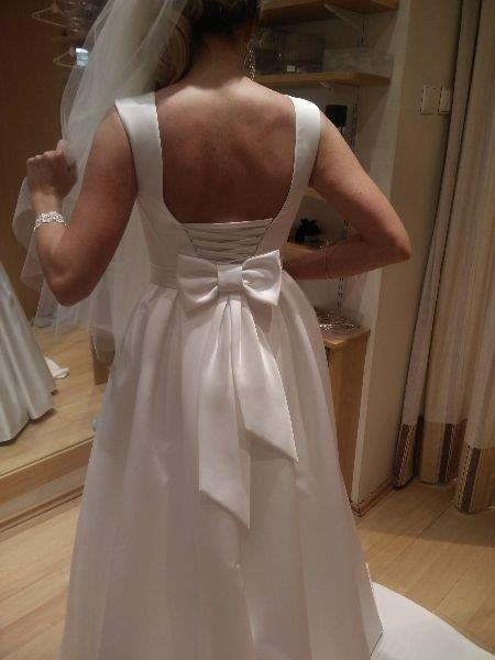 Suknia ślubna, welon-krótki, dopinany tren